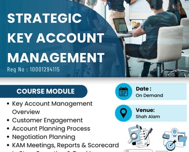 This course equips participants with the skills to manage key accounts effectively, ensuring long-term client relationships and business growth. It emphasizes customer-centric strategies, account planning, and value creation to build strong partnerships and sustain competitive advantage.
