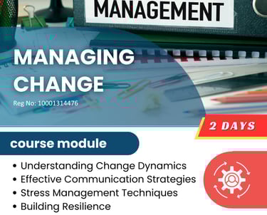 This course develops participants’ ability to lead and manage organizational change effectively. It emphasizes the human side of change, strategies for overcoming resistance, and techniques to align people with new processes and goals.