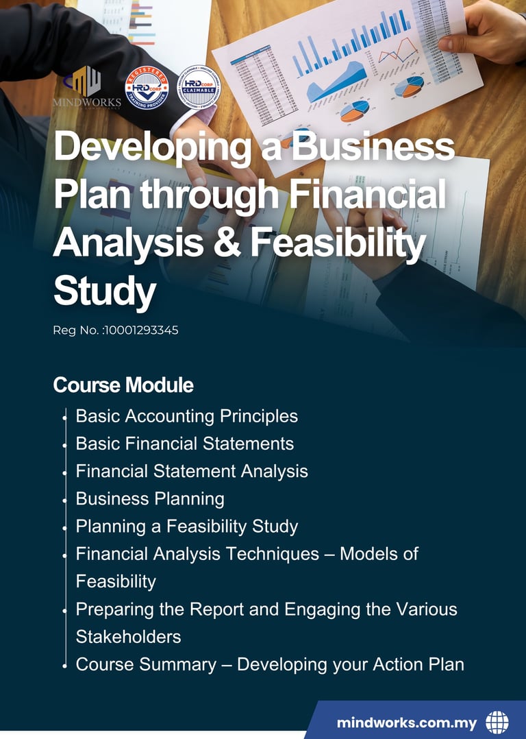 This program equips professionals with the skills to interpret financial statements, analyze business feasibility, and make informed decisions. Participants will learn how financial analysis supports business planning, investment evaluation, and project selection, while feasibility studies provide clarity on risks, opportunities, and long-term profitability. By mastering these tools, you and your team will be able to choose value-adding ideas with confidence, build competitive advantage, and contribute effectively to organizational success.