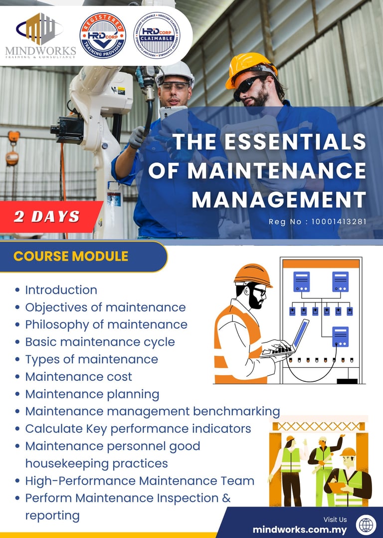 This program introduces participants to the key principles and practices of maintenance management. It covers planning, scheduling, and resource allocation to improve equipment reliability, minimize downtime, and optimize maintenance costs.